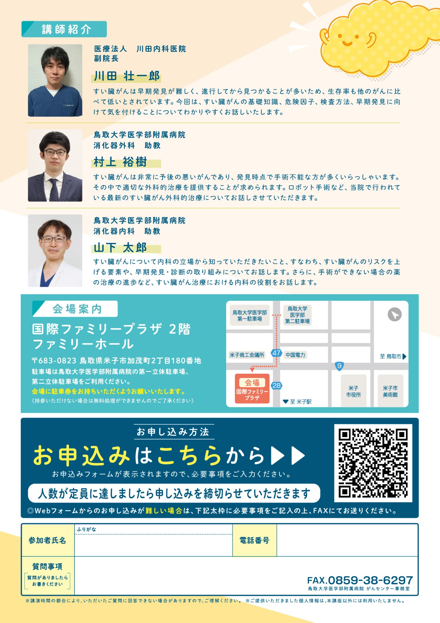 10/19開催予定の市民公開講座「すい臓がんを知る」の受付は終了いたしました。